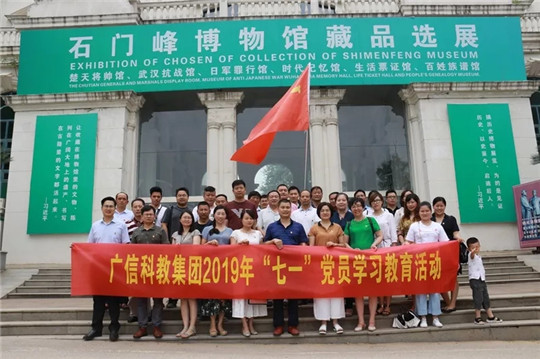 7月1日,為慶祝中國共產黨建黨98周年,重溫黨的光輝歷史,牢記黨的初心使命,進一步激發黨員活力,廣信科教集團黨委組織集團機關黨支部、分子公司綜合黨支部、廣寧醫院黨支部、華龍公司黨支部、京山黨支部全體黨員、入黨積極分子,前往被評為“湖北省國防教育基地、武漢市愛國主義教育基地”的武漢石門峰紀念公園參觀學習,開展2019年“七一”建黨節黨員學習教育活動。