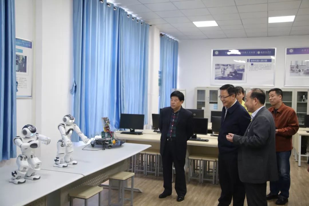 18日上午,荊門市委書記張愛國一行在武昌理工學院校長趙作斌等陪同下首先參觀了信息工程學院智能實驗室,他們來到機器人實驗室、數控技術模擬實驗室、3D打印實驗室、VR技術實驗室等,通過聽取介紹和現場體驗,對學校的各類辦學條件給予高度評價。隨后,張愛國書記一行來到了武昌理工學院大學生成功素質展示節展示廳,在講解員的講解下,先后參觀了專業素質展區、創新素質展區、成功校友展區等。在該校學生制作的仿生六足機器人和飛機航模前,張愛國書記一行駐足觀看學生操作,并對學校的人才培養成效高度贊揚。