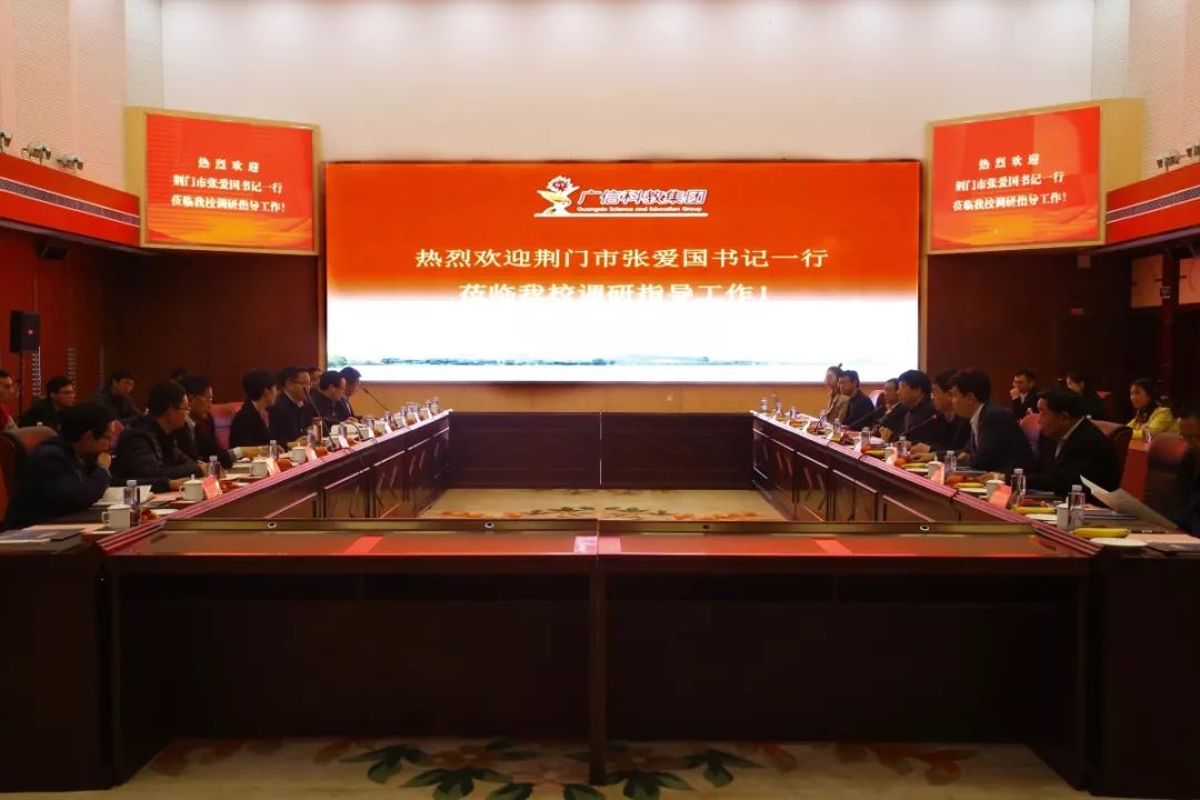 荊門市委書記張愛國代表荊門市委市政府以及300萬荊門人民對廣信科教集團、武昌理工學院長期以來對荊門市的發展做出的貢獻表示感謝。他說,此次前來調研籌劃已久,通過參觀和聽取介紹深受啟發,感受到了武昌理工學院深厚的文化底蘊和豐碩的辦學成果,成功素質教育辦學理念讓人印象深刻,為國家培養了一大批高素質人才。張書記指出,看到武昌理工學院能夠發展成全國知名的民辦高校非常高興,看到廣信科教集團在大教育、大旅游、大健康、高科技等產業前沿布局感覺很有超前眼光,趙作斌先生為家鄉做出了貢獻也爭了光,長年以來回報家鄉、投資家鄉的情誼讓人感動。他介紹了荊門市近年來的良好發展情況,并表示將全力支持綠林山旅游景區、丁家沖生態莊園等項目的發展。雙方還探討了武昌理工學院與荊門市在人才培養、產學融合、服務地方經濟社會發展等方面的合作事宜,共商校地合作大計。