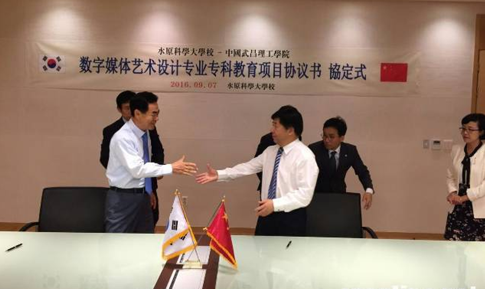 訪問期間,代表團受到了水原大學校長李仁洙、水原科技大學校長樸哲秀的熱情接待。中韓雙方就聯合申報合作辦學項目、開辦新專業、開展教學合作、聯合建立學生學習實習基地、教師聯合培訓、開展學生交換項目等合作領域進行了深入洽談,并簽訂了聯合申報合作辦學協議書。趙校長一行在李仁洙校長、樸哲秀校長等的陪同下,一起參觀了水原大學、水原科技大學的教學設施和科學研究成果。