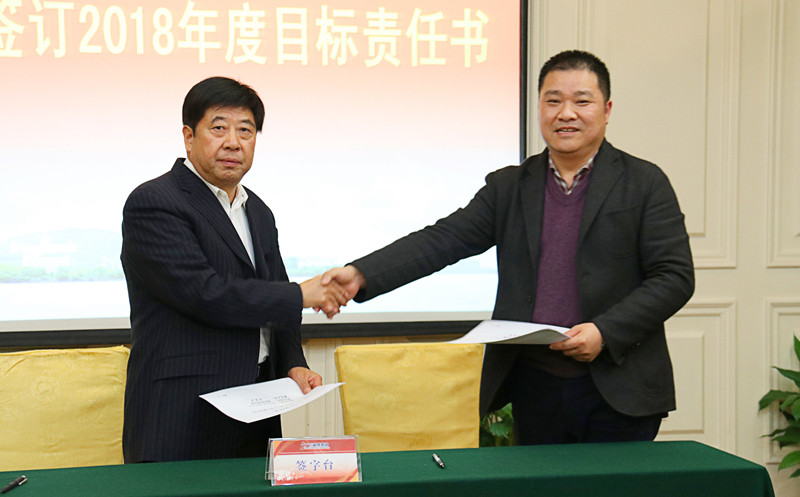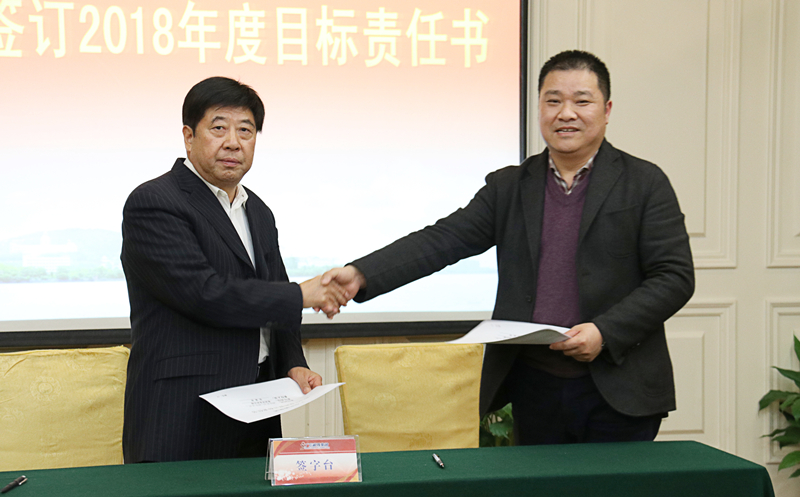 為使各單位2018年發(fā)展目標(biāo)制定的更加嚴(yán)謹(jǐn)、民主、科學(xué)可操作,集團(tuán)今年的責(zé)任書(shū)分兩批簽訂,在3月4日召開(kāi)的全體員工大會(huì)暨2018年度目標(biāo)責(zé)任書(shū)簽訂儀式上,趙總裁與第一批,以經(jīng)營(yíng)任務(wù)為主的集團(tuán)高管、分子公司負(fù)責(zé)人、集團(tuán)職能部門(mén)負(fù)責(zé)人簽訂了責(zé)任書(shū),此次會(huì)議簽訂責(zé)任書(shū)的單位,管理任務(wù)的權(quán)重相對(duì)較大、經(jīng)營(yíng)目標(biāo)的制定更加細(xì)致。隨后,為切實(shí)保護(hù)發(fā)展成果,突出“安全責(zé)任重于泰山”,集團(tuán)授權(quán)委派集團(tuán)辦公室主任分別與各分子公司總經(jīng)理簽訂2018年度安全目標(biāo)責(zé)任書(shū),明確安全管理責(zé)任,做到安全工作與經(jīng)營(yíng)管理工作同部署、同落實(shí)。