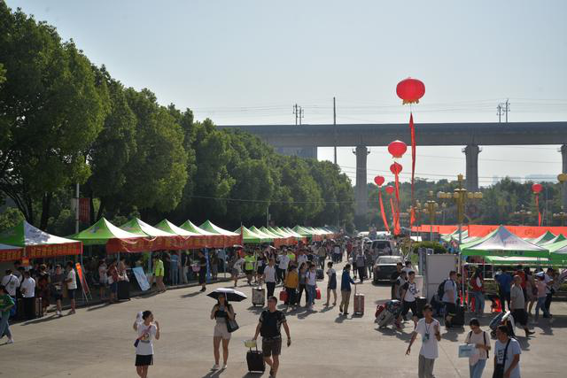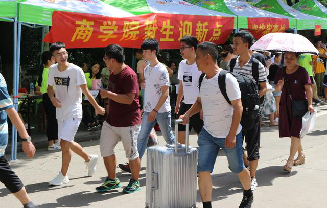 在成功廣場旁的迎新點,標有各個學院名稱的迎新站點整齊有序排開,師生們用親切的笑容、周到的服務歡迎2018級新同學。搬運桌椅,搭帳篷,拉橫幅,去車站接人,陪同新生交費、辦校園卡、幫拿行李、入住宿舍、領取軍訓服.....千余名迎新志愿者們忙碌在迎新一線。