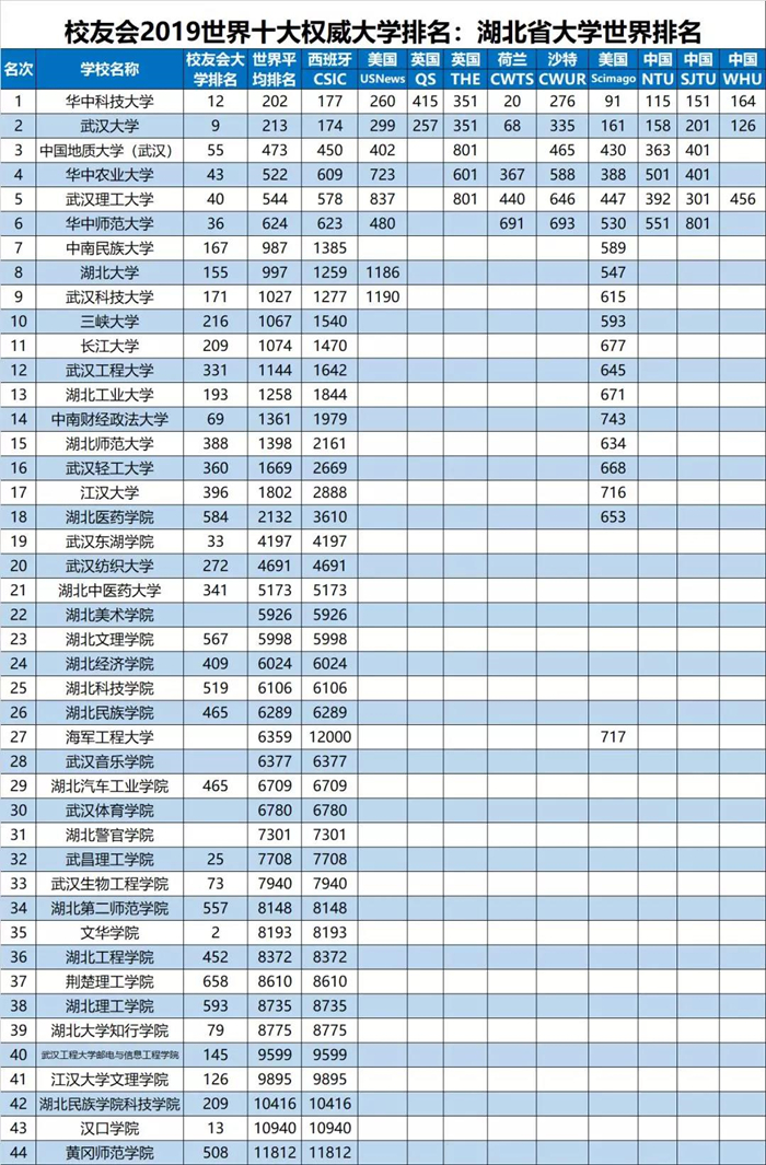 近日,艾瑞深中國校友會(huì)網(wǎng)首次公布《校友會(huì)2019世界大學(xué)排名分析報(bào)告》,報(bào)告依據(jù)2018-2019年英國QS、英國THE、美國USNews、美國Scimago、西班牙CSIC、荷蘭CWTS、沙特CWUR、中國NTU、中國SJTU和中國WHU等全球公認(rèn)的世界十大權(quán)威大學(xué)排名評(píng)價(jià)結(jié)果,最新發(fā)布校友會(huì)2019世界十大權(quán)威大學(xué)排名(中國31個(gè)省市自治區(qū)大學(xué))等排名。武昌理工學(xué)院上榜2019湖北省大學(xué)世界排名,并位居第32名,世界排名7708名。