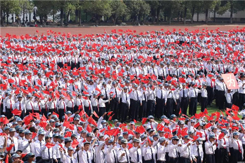 9月19日,武昌理工學院“2019級新生軍訓檢閱暨開學典禮”隆重舉辦。現場,近5000名新生手揮國旗,齊唱《我和我的祖國》,燃爆全場。
