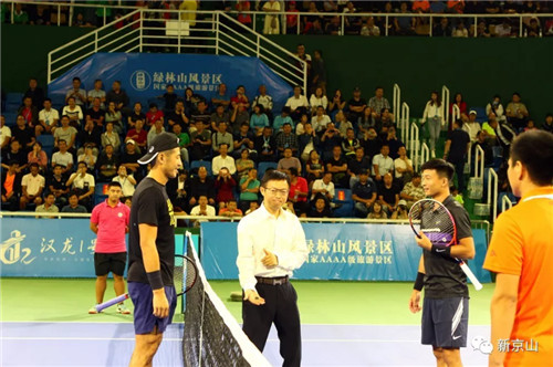 9月20日,由綠林山風景區領銜贊助的2019“綠林山風景區”中國(京山)綠林網球·英雄會在京山市文峰網球公園中央網球場盛大開幕。比賽期間,京山大洪山旅游開發有限公司總經理呂浩田為明星爭霸賽挑邊。