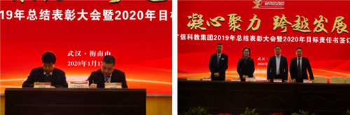 1月17日,廣信科教集團2019年總結表彰大會暨2020年目標責任書簽訂儀式在武昌理工學院圖書館報告廳隆重舉行。廣信科教集團、武昌理工學院領導,集團各職能部門、分子公司負責人,及部分員工代表共200余人參與本次大會。會上,廣信科教集團董事局主席、總裁,武昌理工學院校長趙作斌發表重要講話。