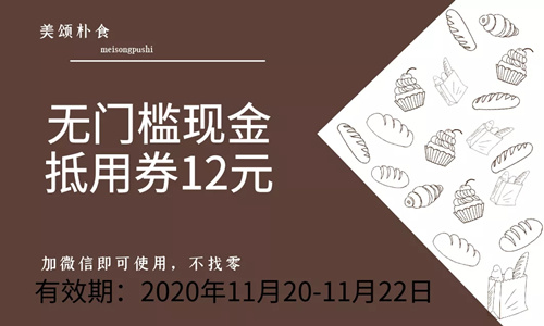 美頌樸食無門檻現(xiàn)金抵用券12元,進店添加微信即可領取!