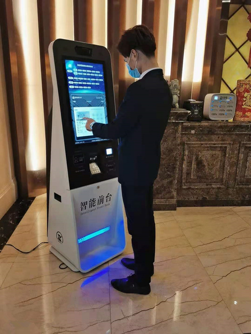 據悉,廣信國際大酒店大廳內安放有自助入住一體機,消費者通過刷臉能夠輕松完成入住登記、預定等一系列住宿需求,可30秒開房、10秒退房,全程人機互動,打破了以往排隊等待的狀態,最大幅度地降低人員之間的接觸,在保障消費者健康安全的同時,大大提升了顧客的體驗感。
