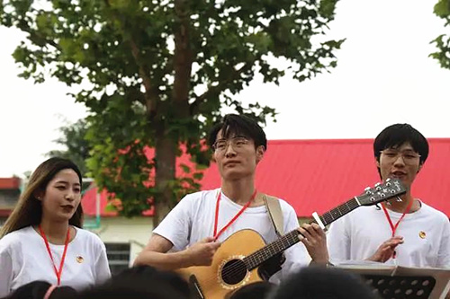授牌活動現(xiàn)場,武昌理工學(xué)院社會實踐團(tuán)隊還為孩子們帶來了精彩的演出。在匯演的舞臺上,飄揚的音樂,融入了隊員們的才情,用節(jié)奏伴隨音樂,用聲音帶來歡樂,在藝術(shù)的氛圍里,不斷地去探索,以文化強(qiáng)國為己任,繼往開來,再創(chuàng)輝煌。