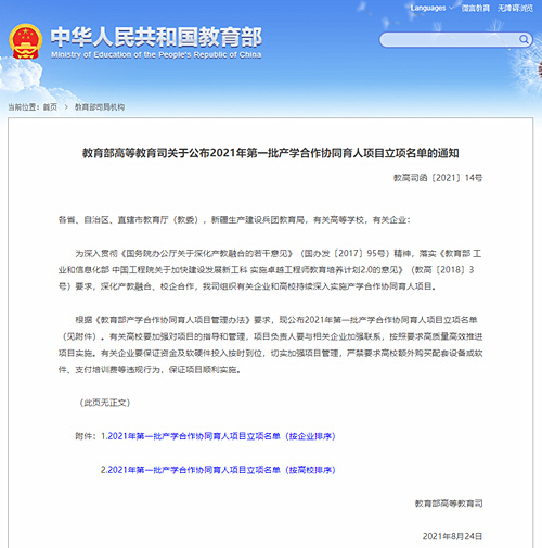 為深入貫徹《國務(wù)院辦公廳關(guān)于深化產(chǎn)教融合的若干意見》(國辦發(fā)〔2017〕95號)精神,落實(shí)《教育部 工業(yè)和信息化部 中國工程院關(guān)于加快建設(shè)發(fā)展新工科 實(shí)施卓越工程師教育培養(yǎng)計(jì)劃2.0的意見》(教高〔2018〕3號)要求,深化產(chǎn)教融合、校企合作,教育部高等教育司組織有關(guān)企業(yè)和高校持續(xù)深入實(shí)施產(chǎn)學(xué)合作協(xié)同育人項(xiàng)目。