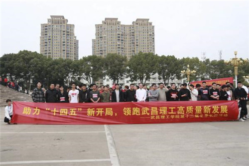 武昌理工學院是中國十大美麗湖畔校園,教職工們圍繞美麗的校園跑步,從行政樓出發,經過商學院、影視傳媒學院,到西區學生宿舍,再經過了梅園、圖書館,到影視傳媒學院、實驗教學中心,最后大家紛紛咬緊牙關奮力沖向最后的終點——行政樓前。