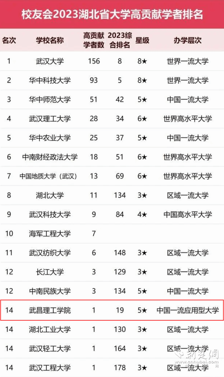 (三)、2023中國大學高貢獻學者排名 武昌理工學院上榜
