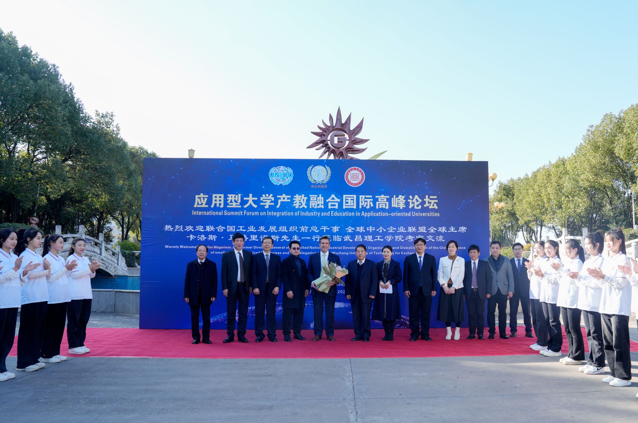 12月7日,聯(lián)合國工業(yè)發(fā)展組織前總干事、全球中小企業(yè)聯(lián)盟全球主席卡洛斯·馬格里諾斯先生一行來到武昌理工學院考察交流,并出席了“應用型大學產(chǎn)教融合國際高峰論壇”。在“應用型大學產(chǎn)教融合國際高峰論壇”上,卡洛斯先生受聘為武昌理工學院榮譽教授和校企合作國際大使。他還欣然題詞:武昌理工學院產(chǎn)學研協(xié)同育人,是一所高水平應用型大學。