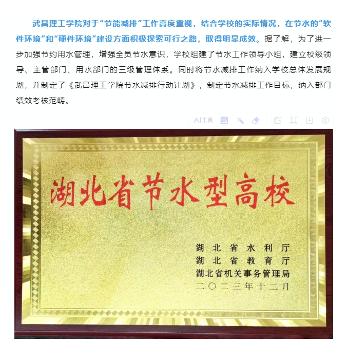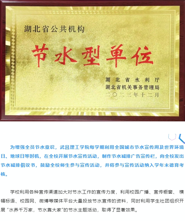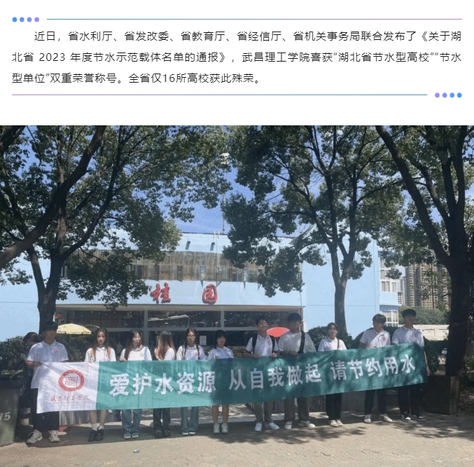 頭條 | 武昌理工學院喜獲“湖北省節水型高校”“節水型單位”雙重榮譽稱號