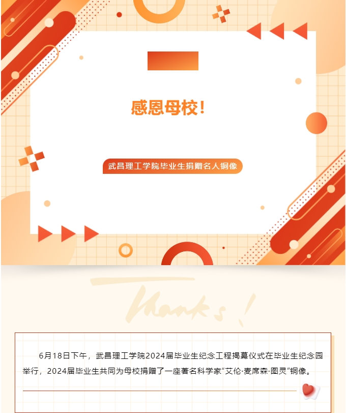 頭條 | 感恩母校!武昌理工學院畢業生捐贈名人銅像