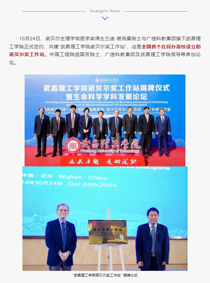 頭條丨全國首個民辦高校“諾貝爾獎工作站”落戶武昌理工學院 諾獎得主受聘首席科學家