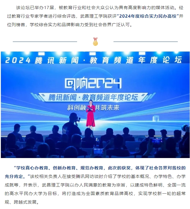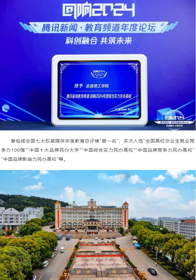 頭條 | 榮登榜首!武昌理工學院獲評2024年度綜合實力民辦高校!