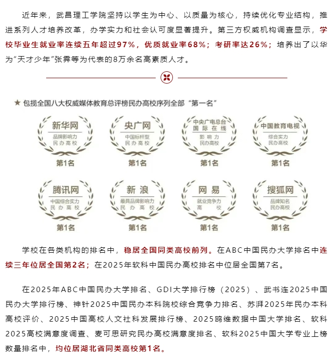頭條|滿意度調(diào)查!武昌理工再次位居省內(nèi)同類高校榜首!