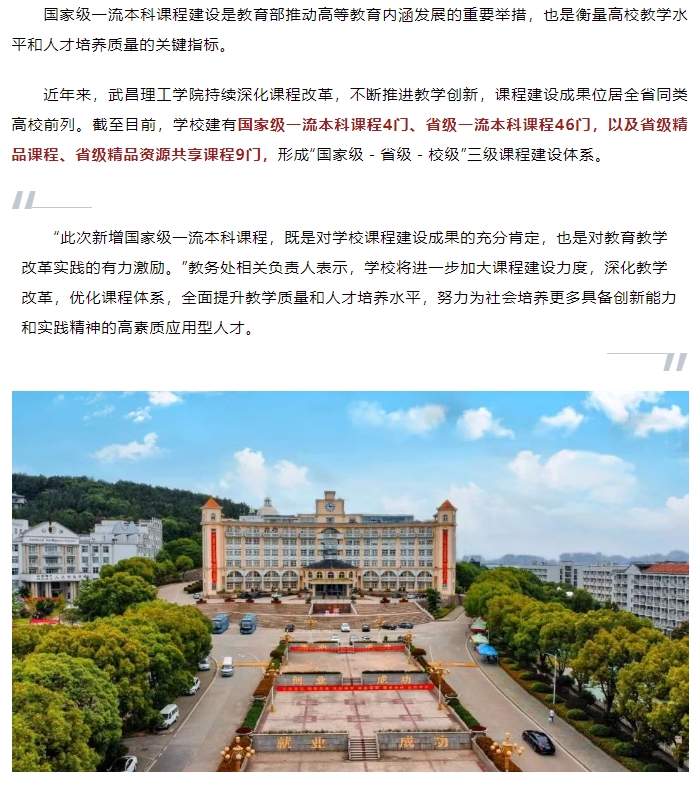 頭條|武昌理工學院再添一門國家級一流本科課程